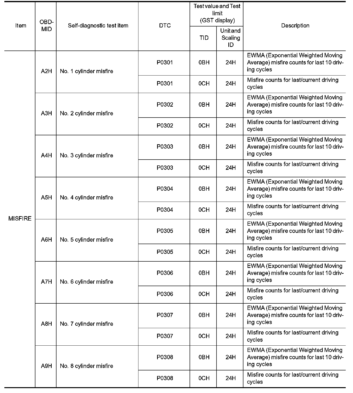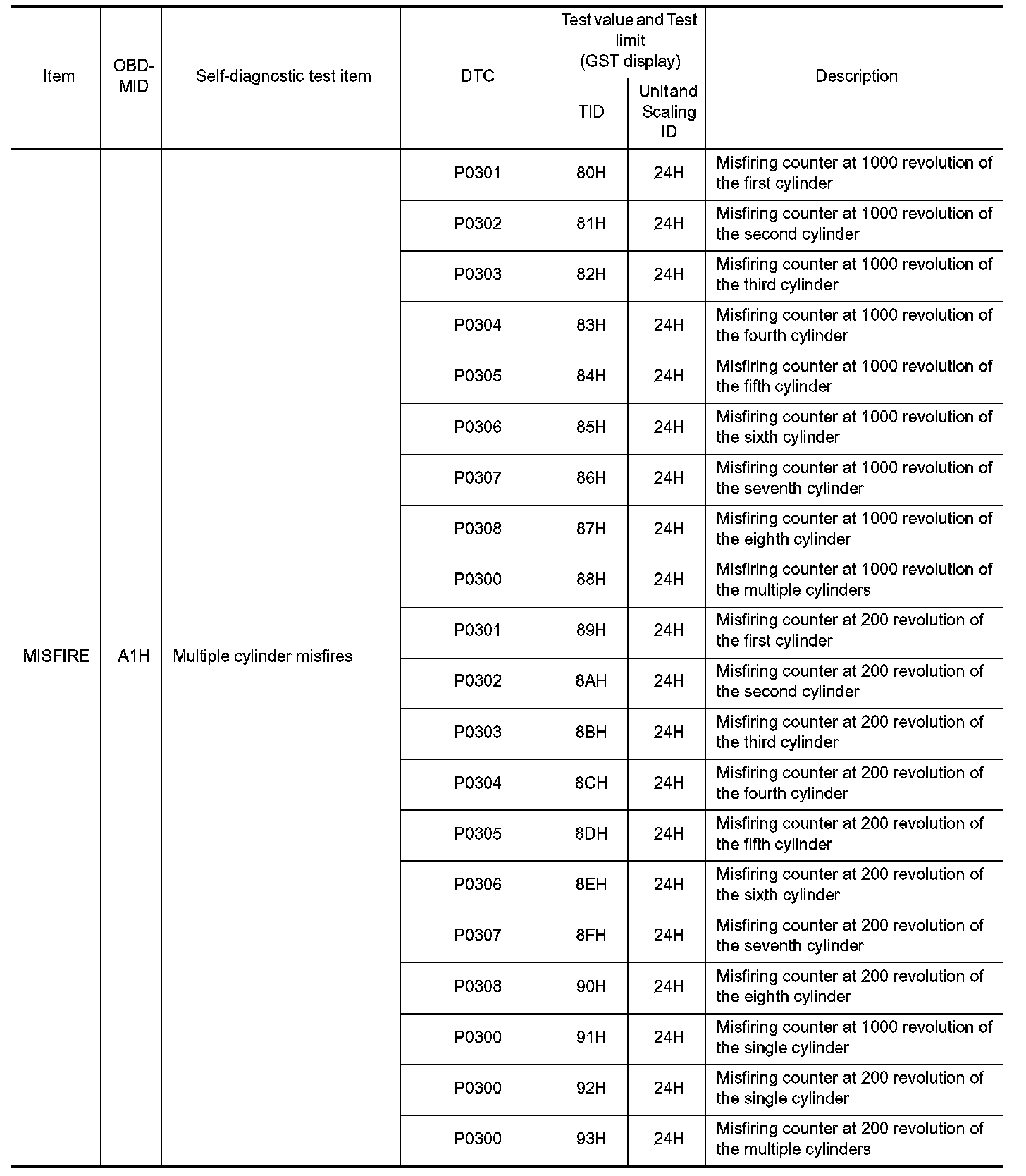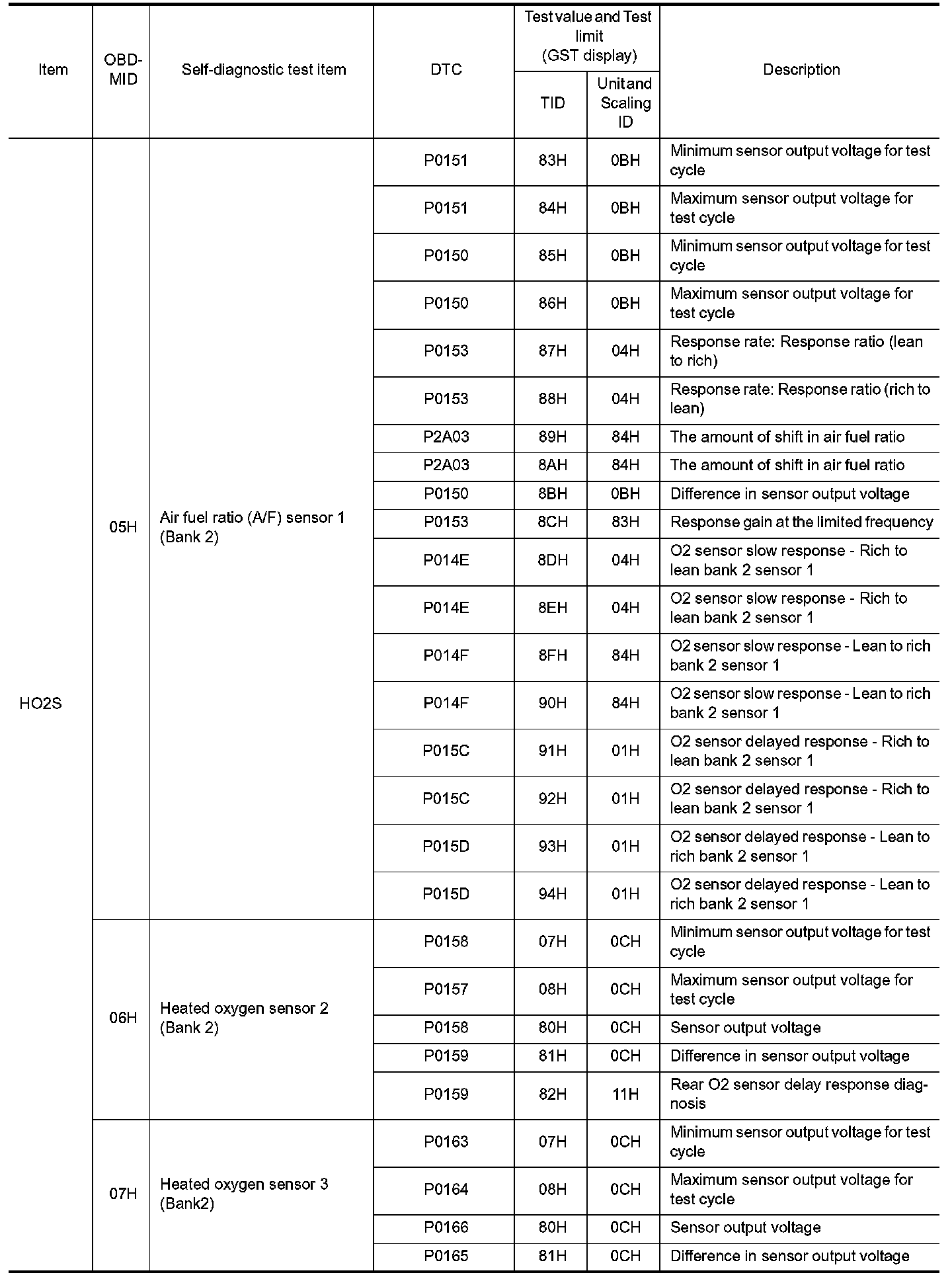 These data (test value and test limit) are specified by On Board Monitor ID (OBDMID), Test ID (TID), Unit and