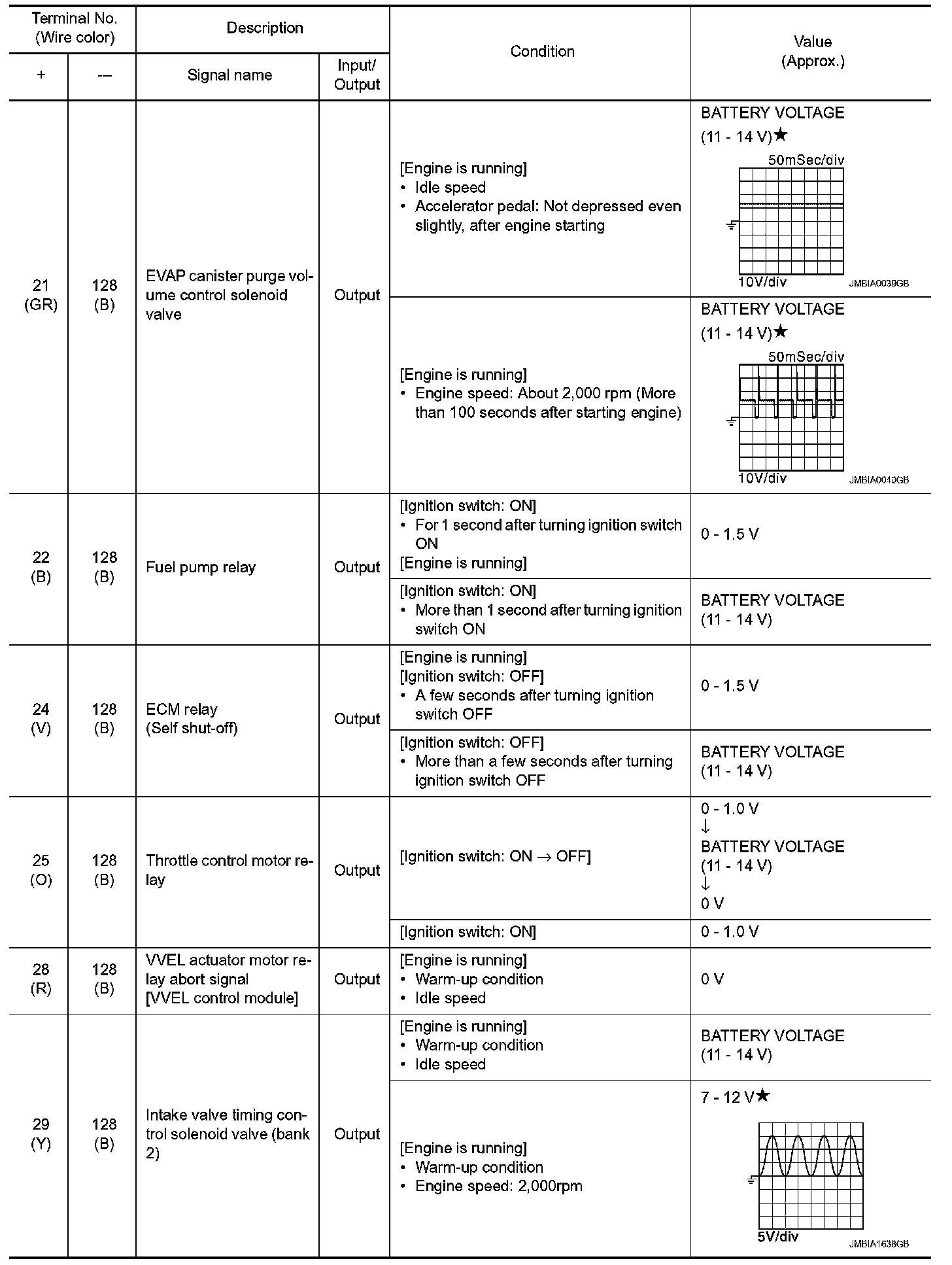 - Specification data are output/input values which are detected or supplied by the ECM at the connector.