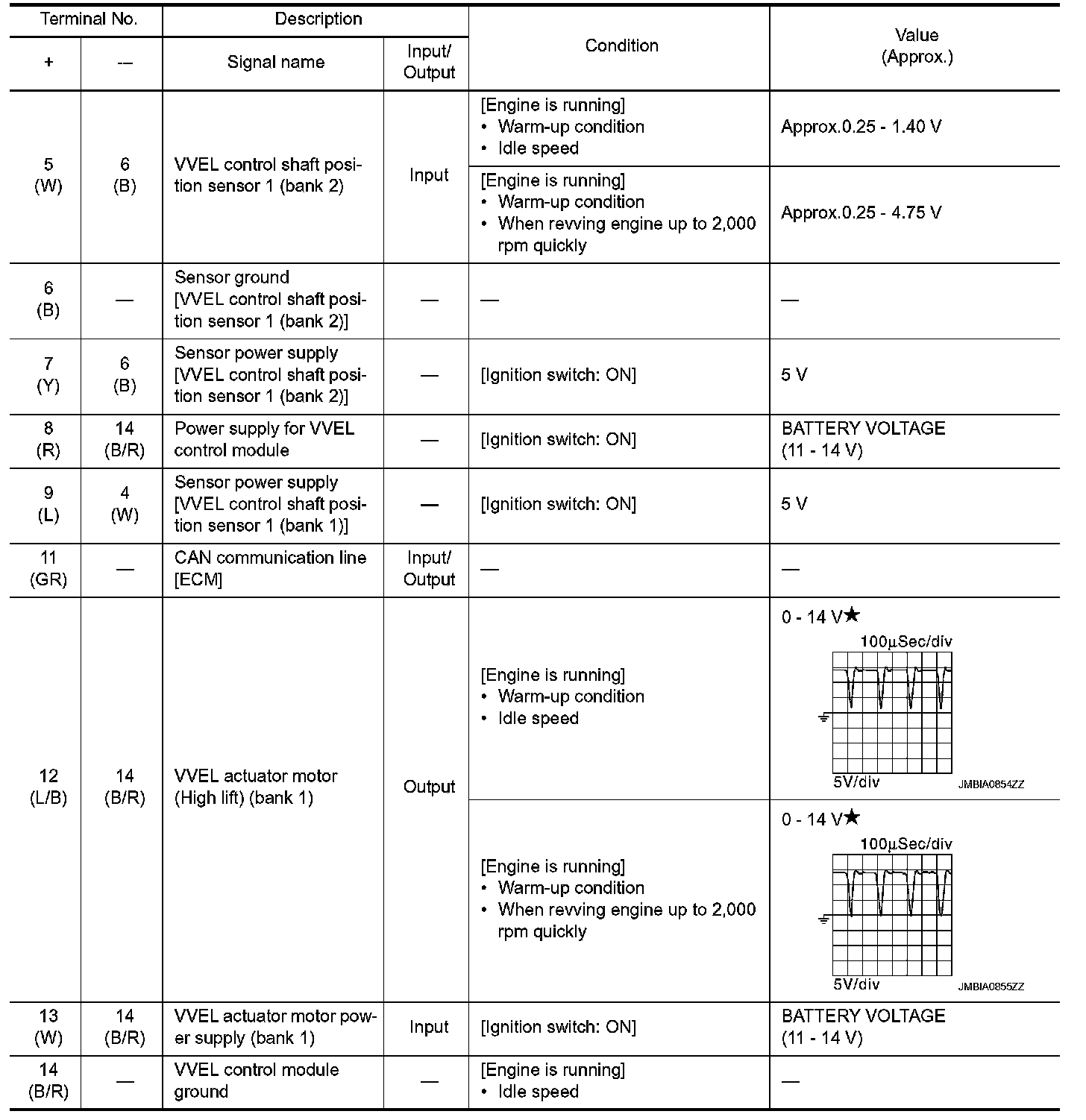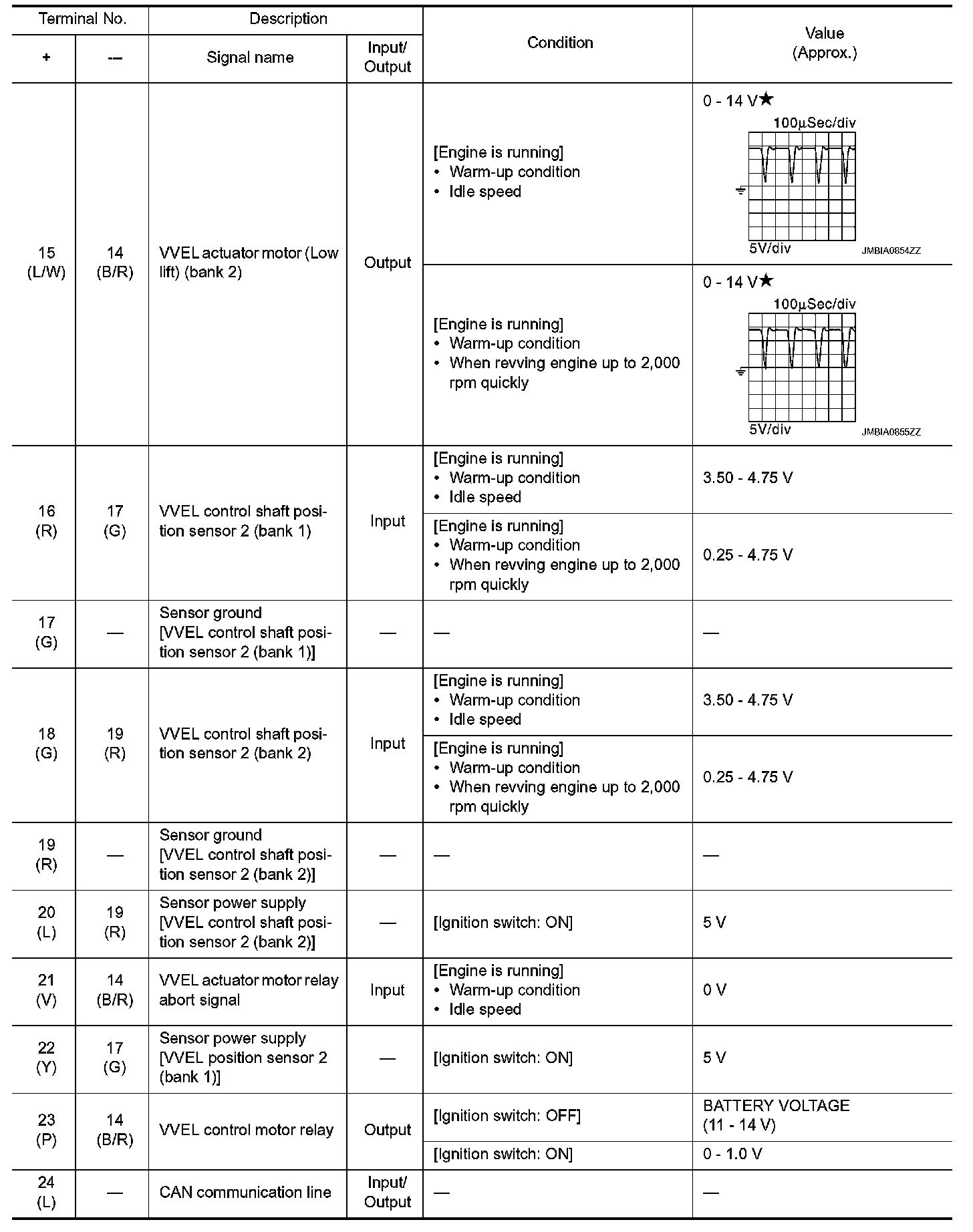 - Specification data are reference values and are measured between each terminal and ground.
