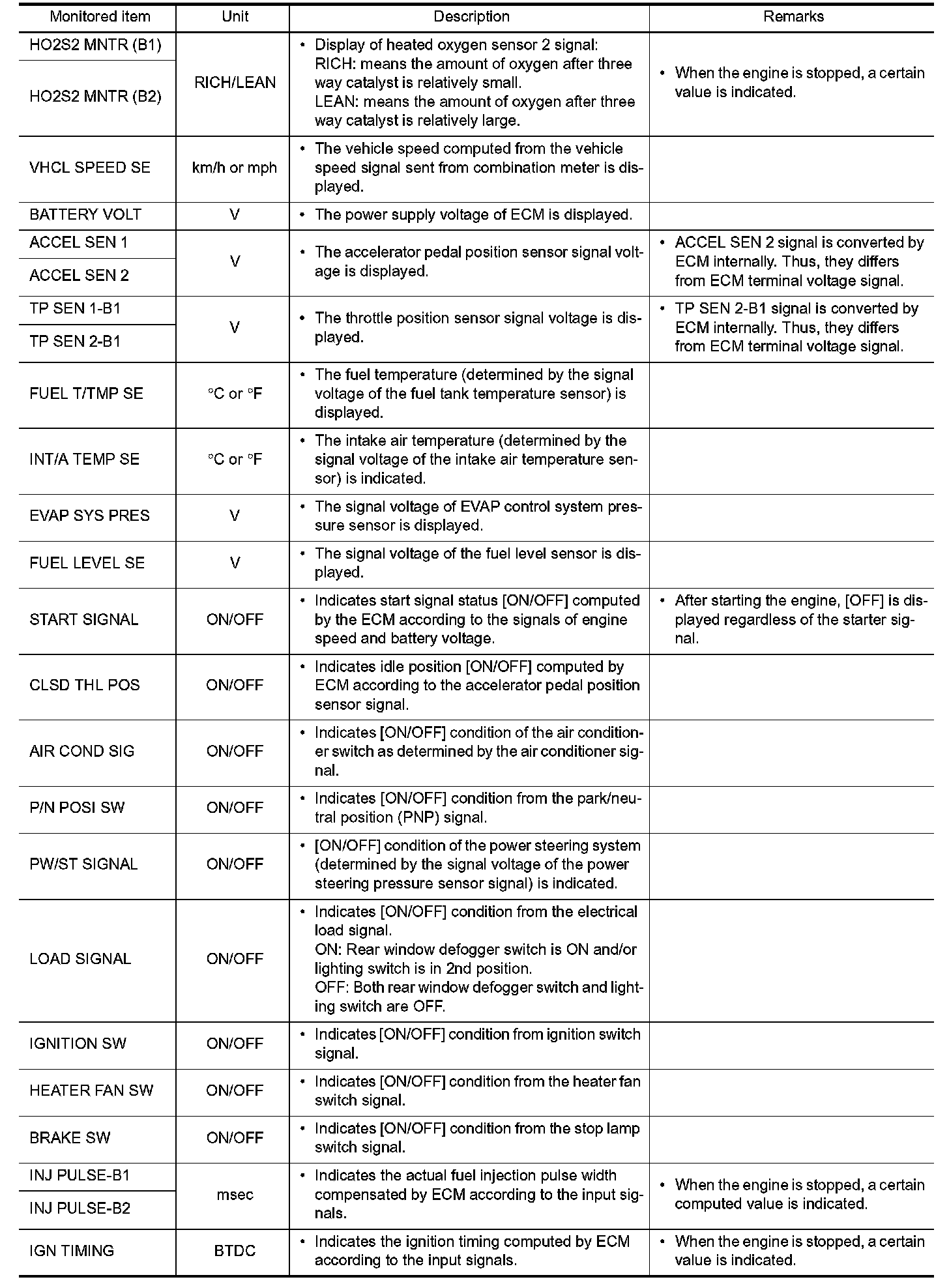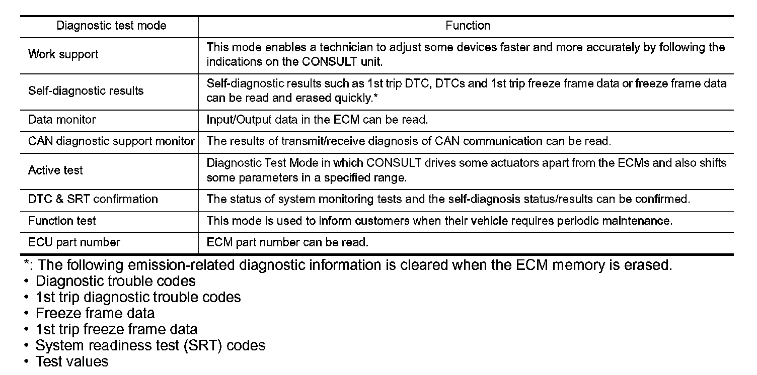 *: The following emission-related diagnostic information is cleared when the ECM memory is erased.