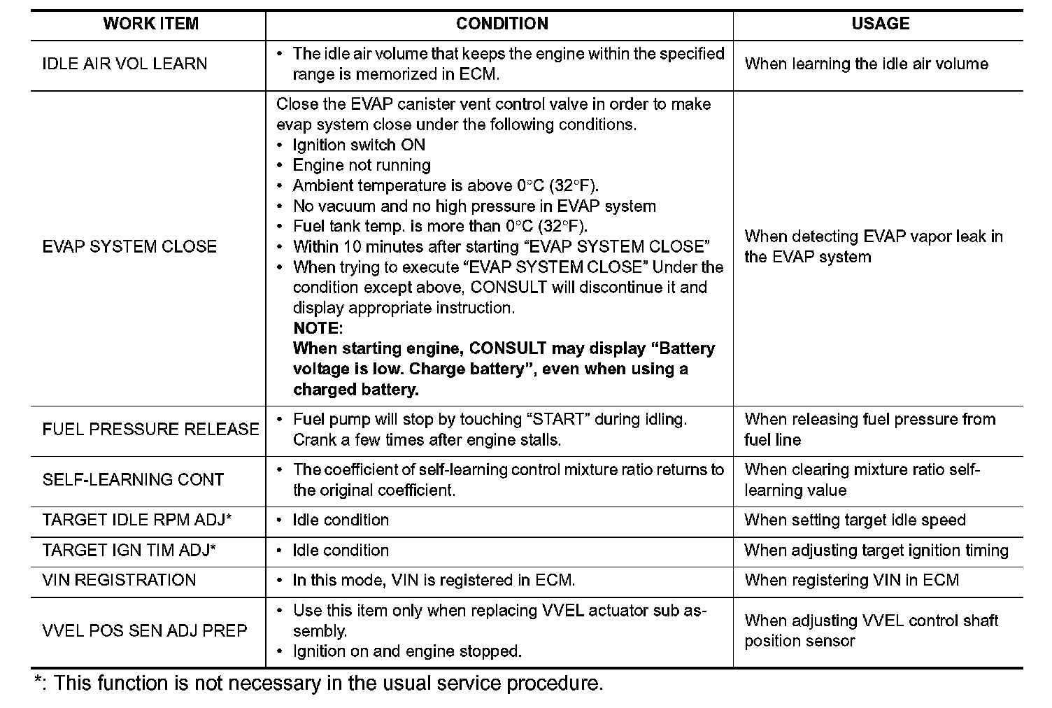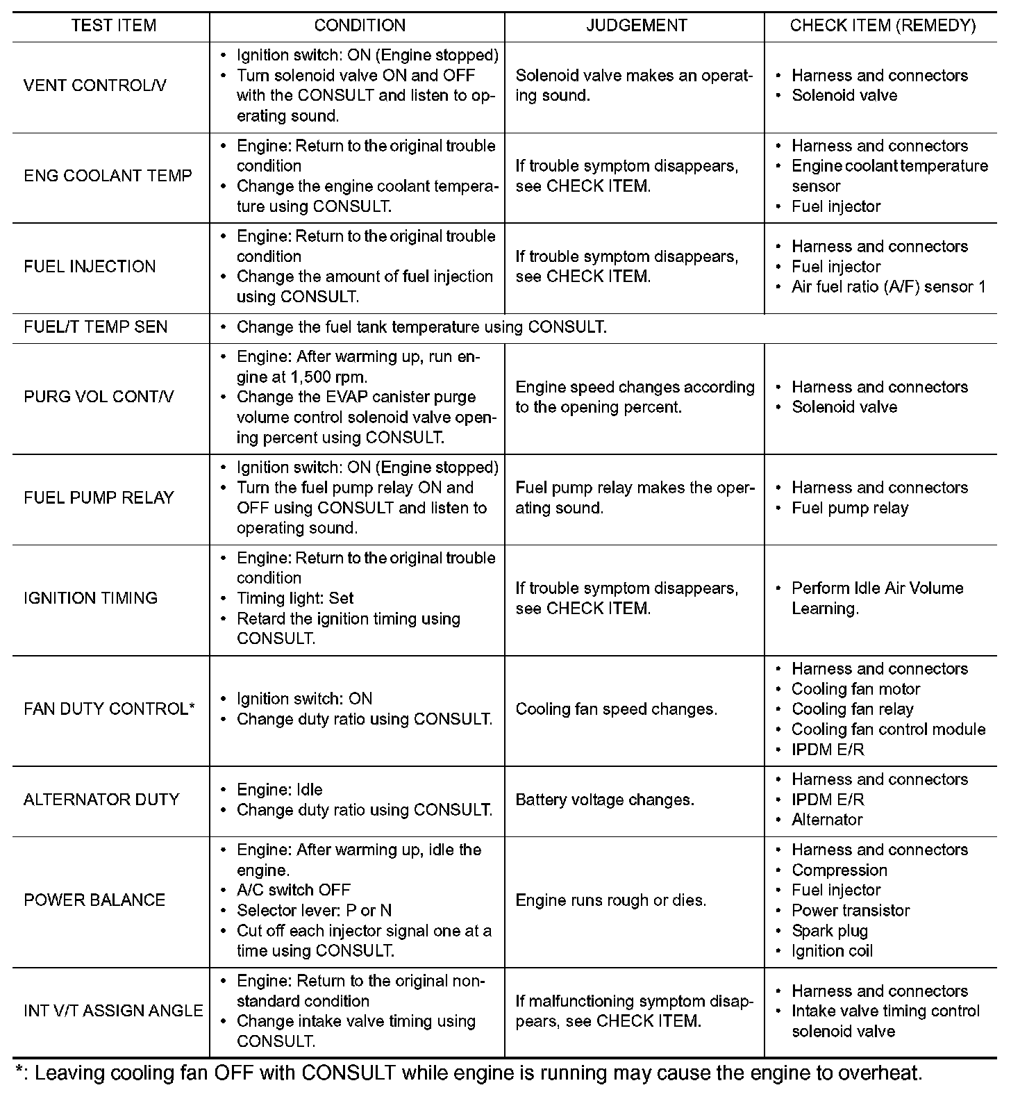 *: Leaving cooling fan OFF with CONSULT while engine is running may cause the engine to overheat.