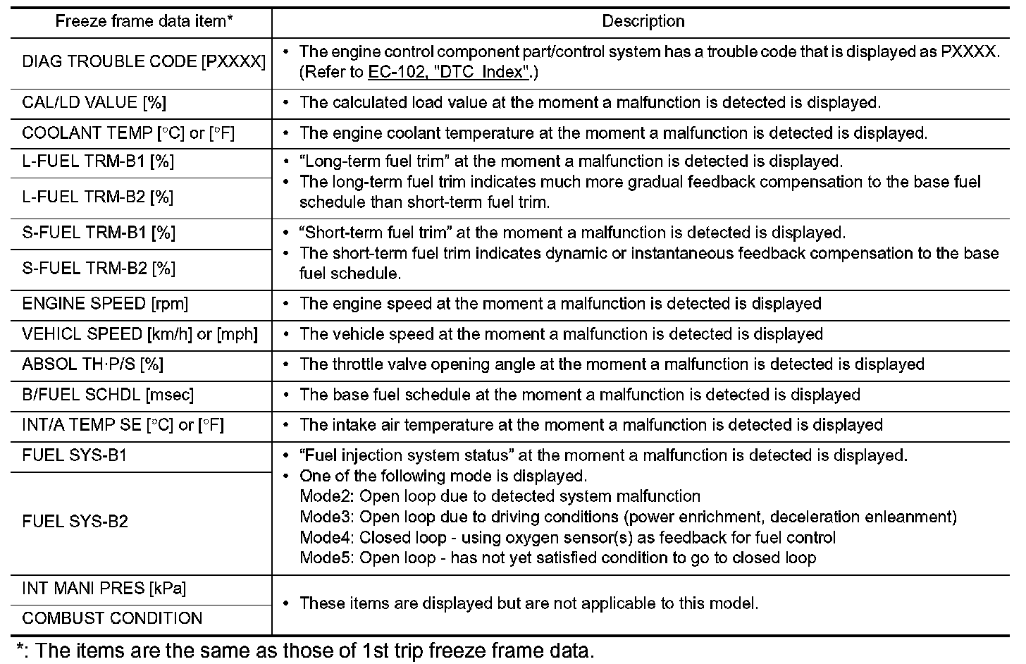 Freeze Frame Data and 1st Trip Freeze Frame Data
