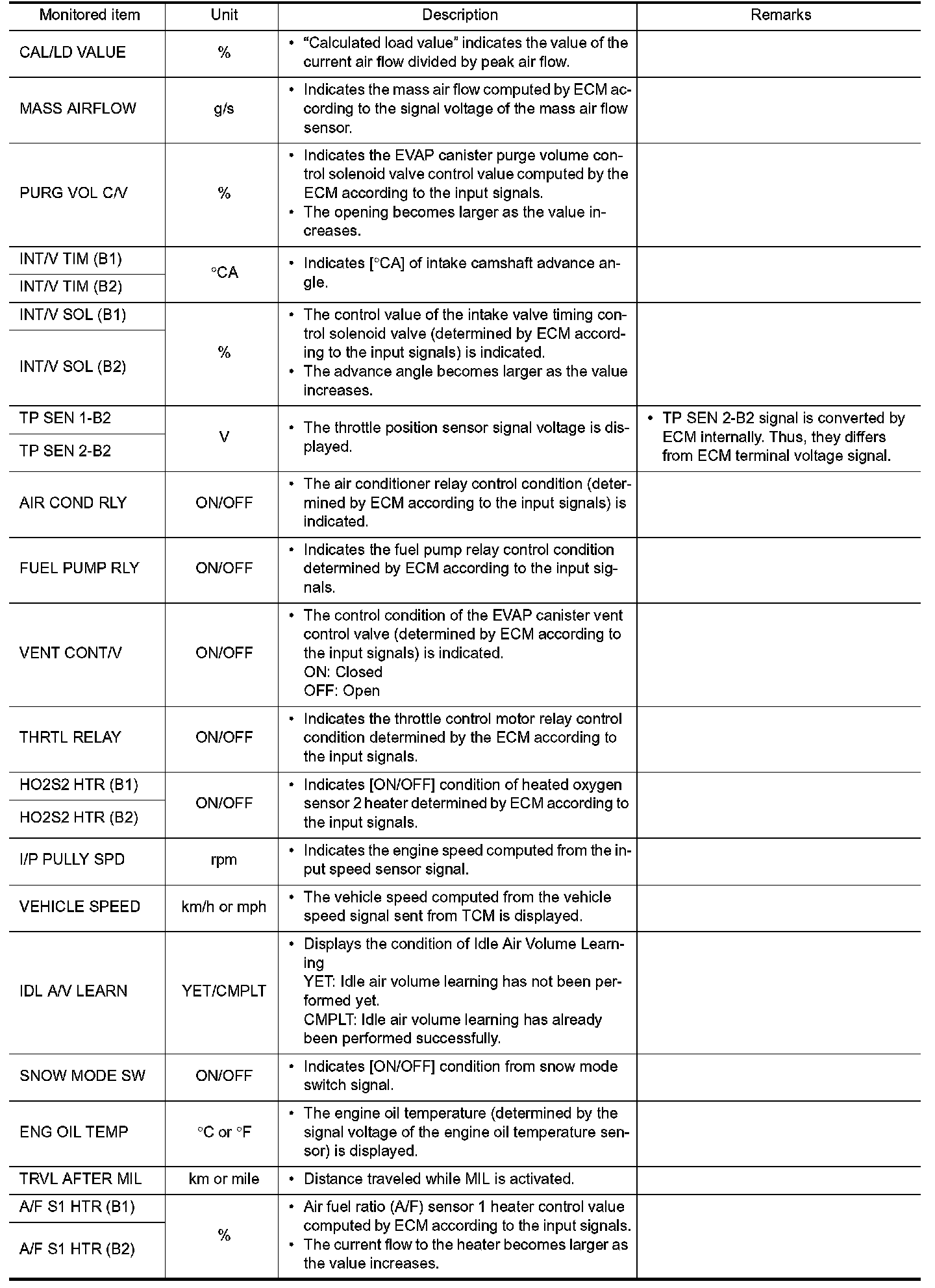 - If "TIME" is neither "0" nor "1t", the DTC occurred in the past and ECM shows the number of times the vehicle has been driven since the last detection of the DTC.