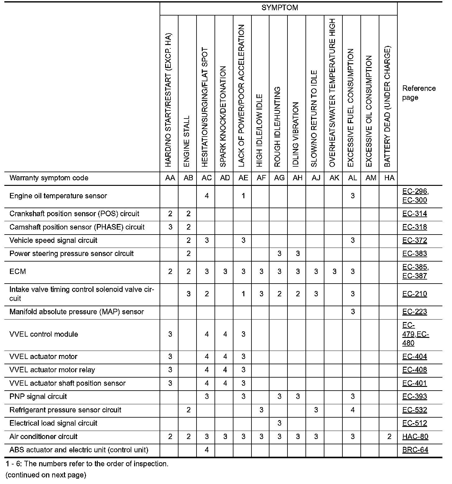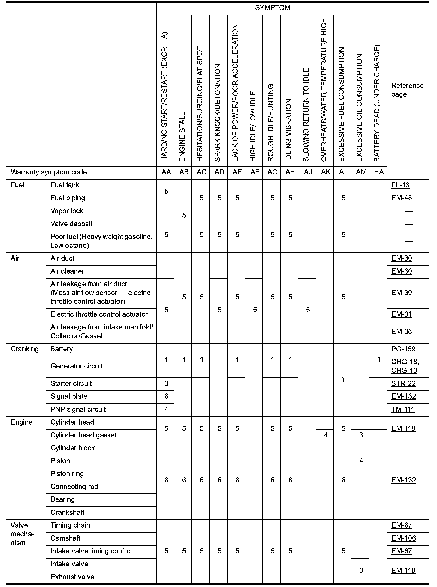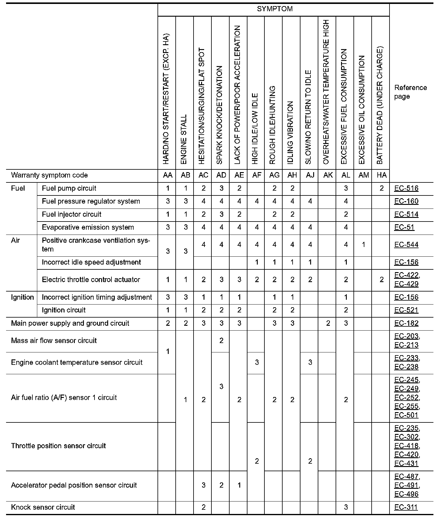 ENGINE CONTROL SYSTEM SYMPTOMS