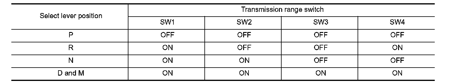 - The TCM judges a select lever position from a combination of ON/OFF signals transmitted from each contact switch.