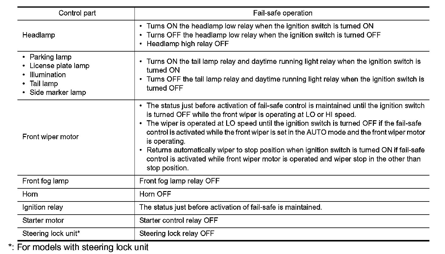 When CAN communication with ECM and BCM is impossible, IPDM E/R performs fail-safe control. After CAN