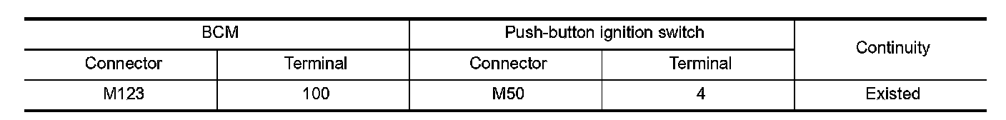 2.Check continuity between BCM harness connector and push-button ignition switch harness connector.
