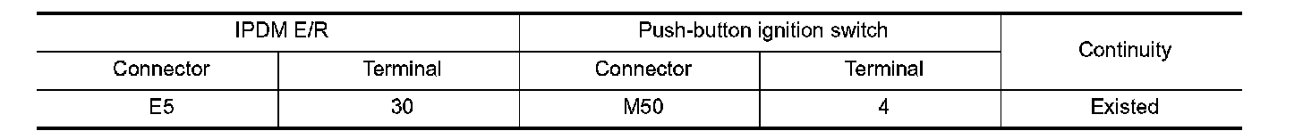 2.Check continuity between IPDM E/R harness connector and push-button ignition switch harness connector.