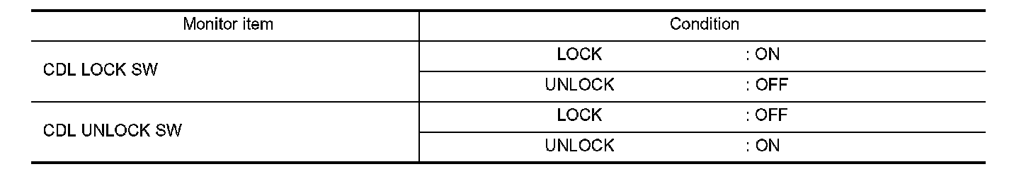 Check ("CDL LOCK SW ", "CDL UNLOCK SW") in "DATA MONITOR" mode for "POWER DOOR LOCK SYSTEM" with CONSULT. Diagnosis Procedure.