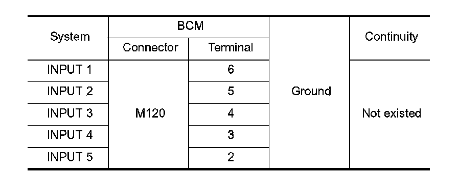 Check for continuity between BCM harness connector and ground.