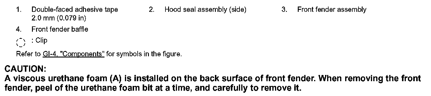 . When removing the front fender, peel of the urethane foam bit at a time, and carefully to remove it.