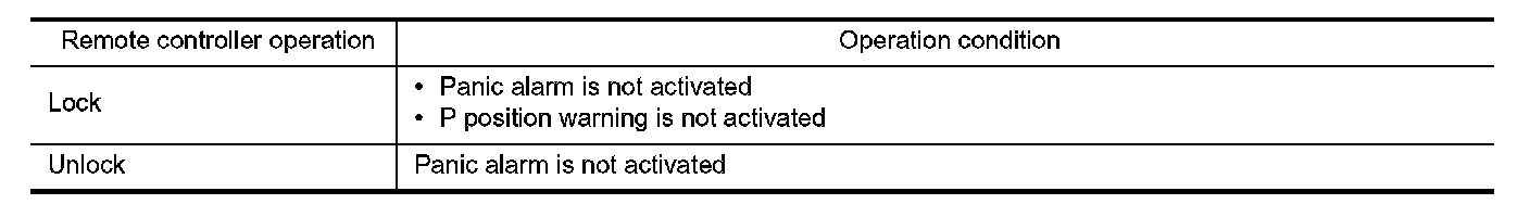 If the following condition are satisfied, remote keyless entry operation is performed when the Intelligent Key is operated.