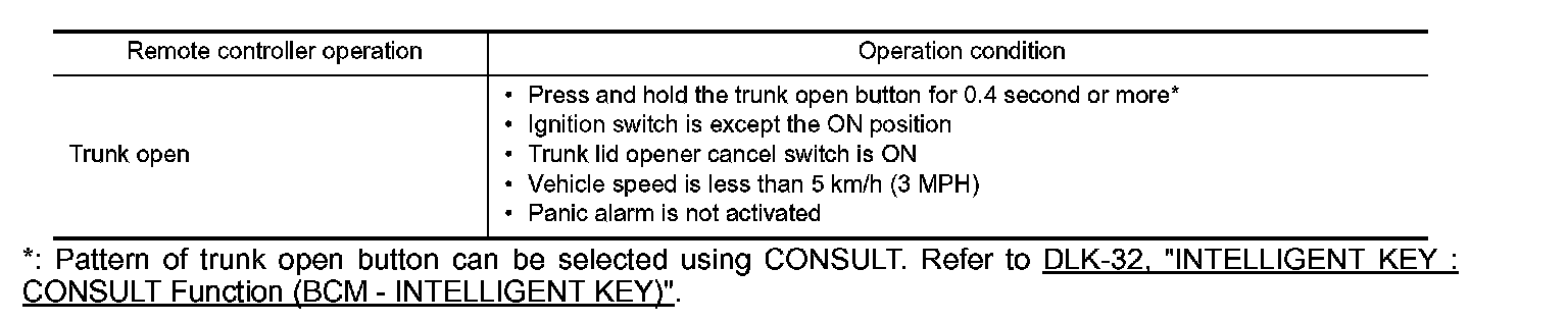 *: Pattern of trunk open button can be selected using CONSULT. Intelligent Key.