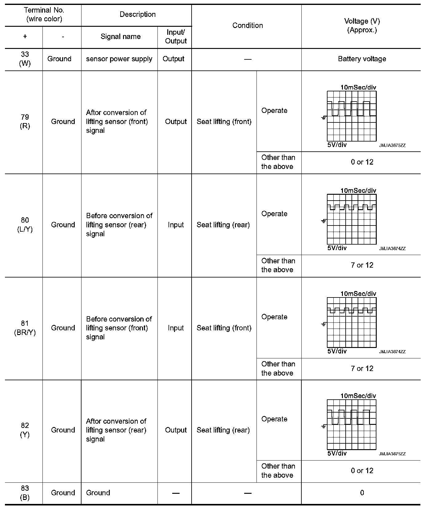 Pinout Values and Diagnostic Parameters