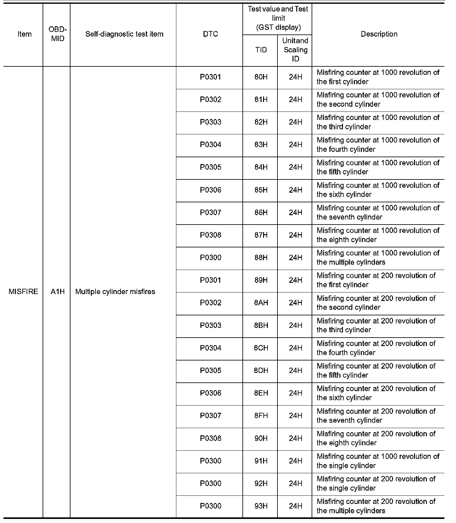 These data (test value and test limit) are specified by On Board Monitor ID (OBDMID), Test ID (TID), Unit and