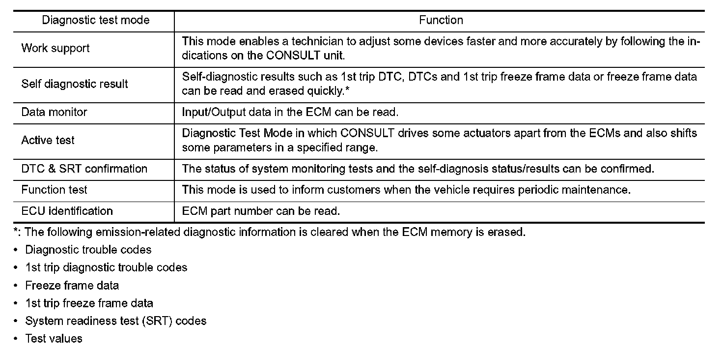 Permanent DTCs stored in ECM memory are displayed on the CONSULT screen to show if a driving pattern required for erasing permanent DTCs is complete (CMPLT) or incomplete (INCMP).