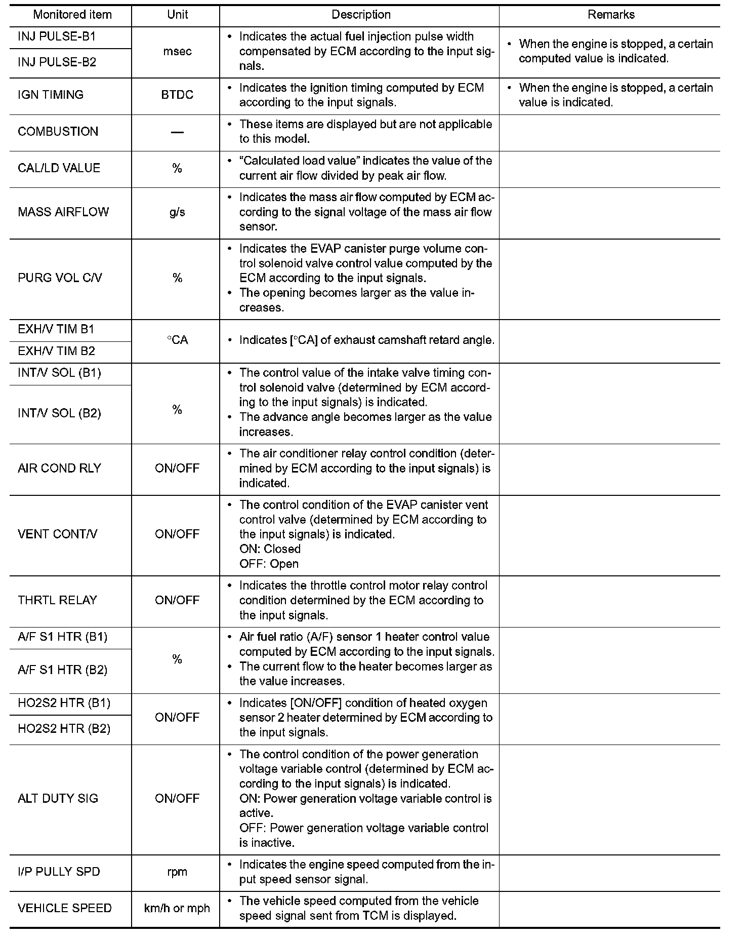 - If "TIME" is neither "0" nor "1t", the DTC occurred in the past and ECM shows the number of times the vehicle has been driven since the last detection of the DTC.