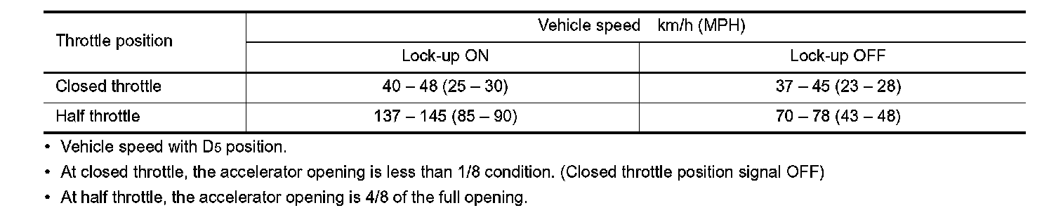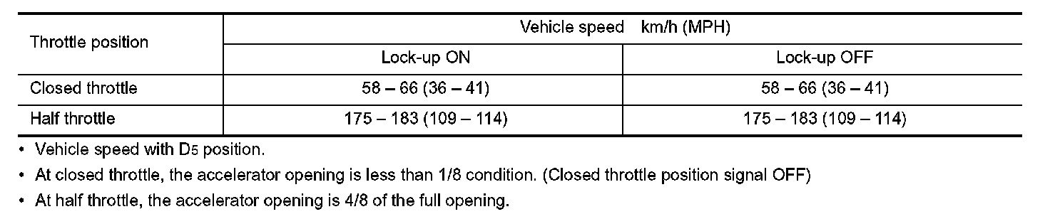 Vehicle Speed at Which Lock-up Occurs/Releases