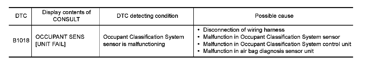Occupant Classification System sensor detects occupant in passenger seat and transmits it to Occupant Classification System control unit.