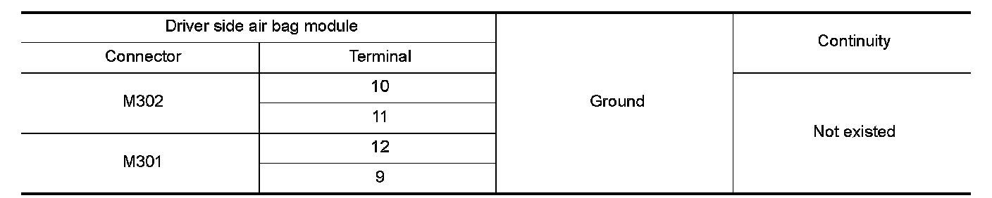 4.Check continuity between driver air bag module harness connector and ground.