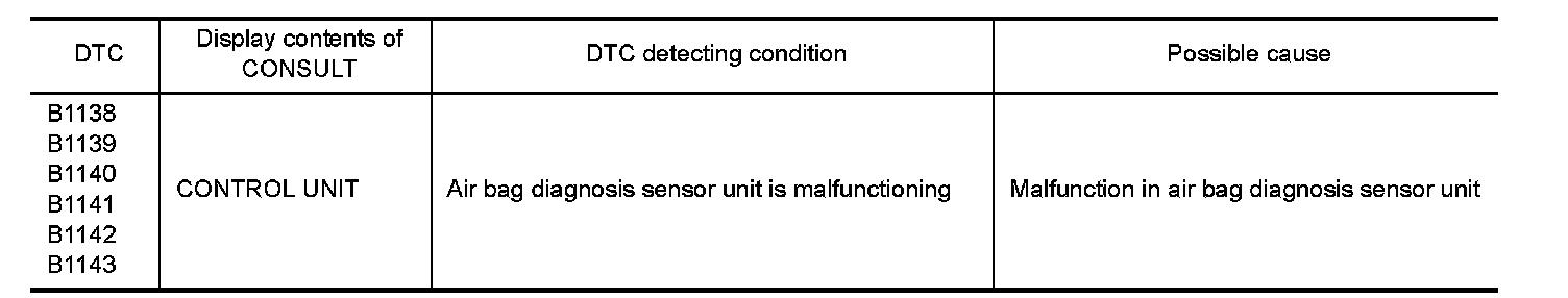 1.Replace air bag diagnosis sensor unit. Refer to "Exploded View" Exploded View.