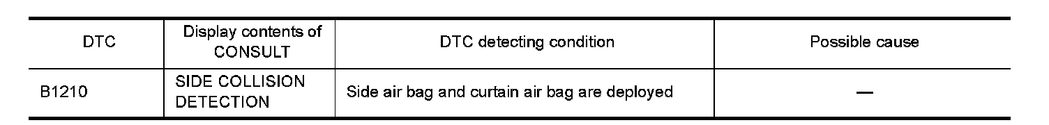 Perform collision diagnosis.Refer to "FOR SIDE AND ROLLOVER COLLISION : When SRS is activated in a collision" When SRS Is Activated In A Collision or "FOR SIDE AND ROLLOVER COLLISION : When SRS is not activated in a collision" When SRS Is Not Activated In A Collision.