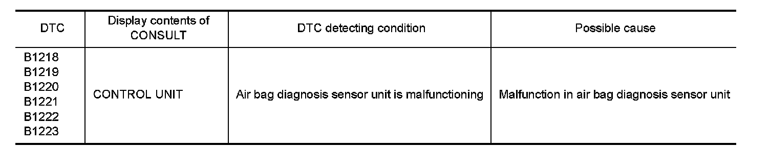 1.Replace air bag diagnosis sensor unit. Refer to "Exploded View" Exploded View.