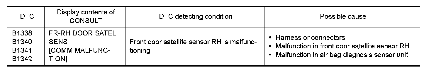 1.Replace front door satellite sensor RH. Refer to "Removal and Installation" Removal and Installation.