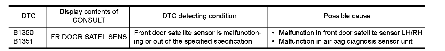 1.Replace both of front door satellite sensors. Refer to "Removal and Installation" Removal and Installation.