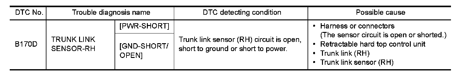 Replace trunk link sensor (RH) sensor. Refer to "Component Parts Location" Component Parts.