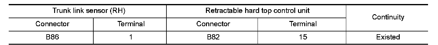 3.Check the continuity between trunk link sensor (RH) sensor harness connector and retractable hard top control unit harness connector.