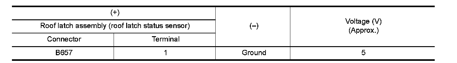 4.Check the voltage between roof latch assembly (roof latch status sensor) harness connector and ground.