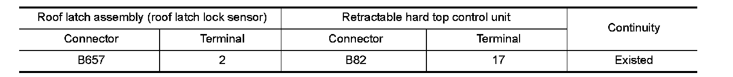 3.Check the continuity between roof latch assembly (roof latch lock sensor) harness connector and retractable hard top control unit harness connector.