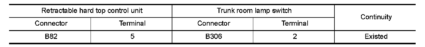 2.Check continuity between retractable hard top control unit harness connector and trunk room lamp switch harness connector.