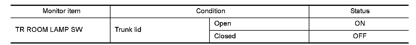 Check "TR ROOM LAMP SW" in "DATA MONITOR" mode of "RETRACTABLE HARD TOP" using CONSULT.