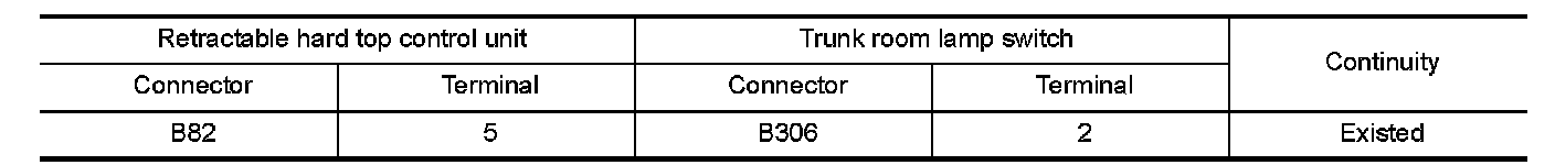 2.Check continuity between retractable hard top control unit harness connector and trunk room lamp switch harness connector.