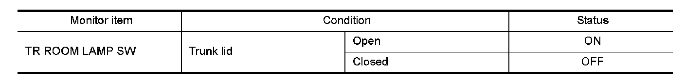 Check "TR ROOM LAMP SW" in "DATA MONITOR" mode of "RETRACTABLE HARD TOP" using CONSULT.