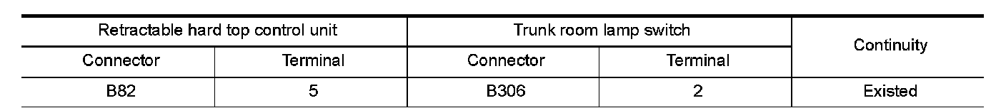 2.Check continuity between retractable hard top control unit harness connector and trunk room lamp switch harness connector.