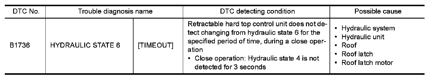 Check roof latch motor. Refer to "Diagnosis Procedure" Roof Latch Motor.
