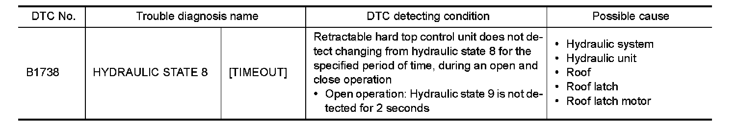 Check roof latch motor. Refer to "Diagnosis Procedure" Roof Latch Motor.
