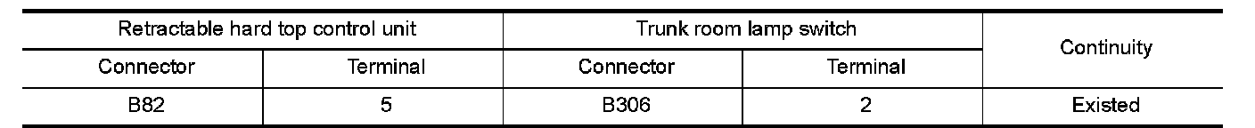 2.Check continuity between retractable hard top control unit harness connector and trunk room lamp switch harness connector.