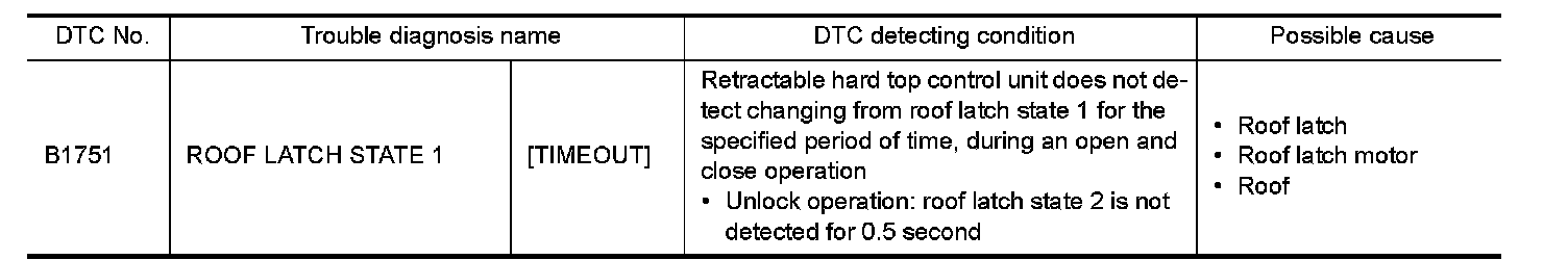 Check roof latch motor. Refer to "Diagnosis Procedure" Roof Latch Motor.