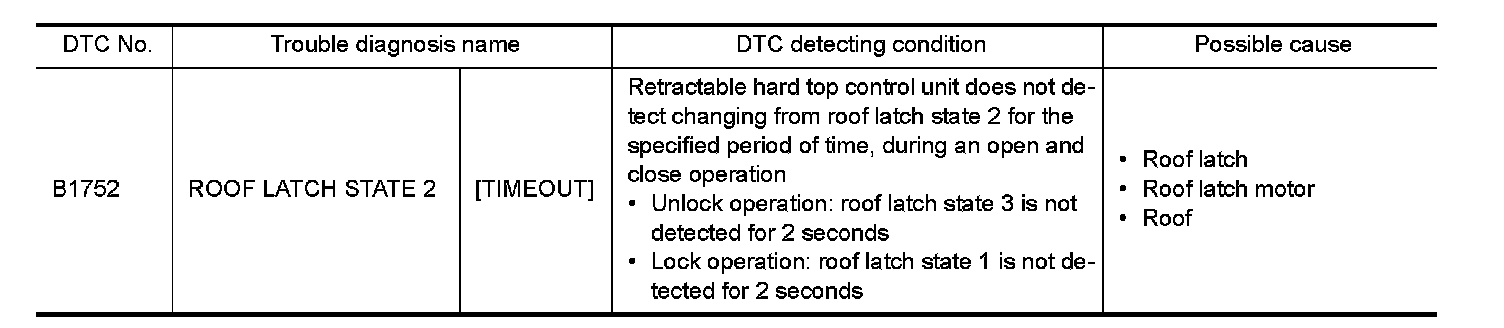 Check roof latch motor. Refer to "Diagnosis Procedure" Roof Latch Motor.