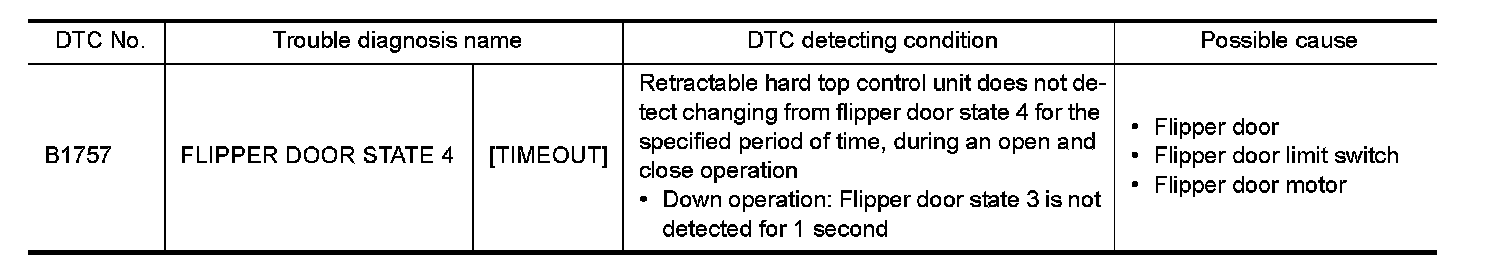 Check flipper door limit switch. Refer to "Diagnosis Procedure" Flipper Door Limit Switch.