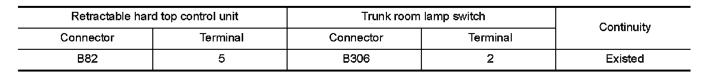 3.Check continuity between retractable hard top control unit harness connector and trunk room lamp switch harness connector.
