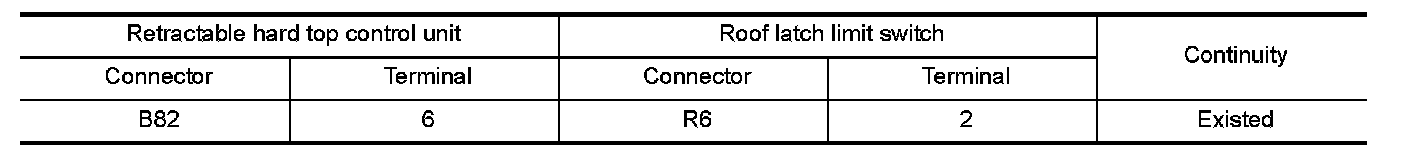 2.Check continuity between retractable hard top control unit harness connector and roof latch limit switch harness connector.