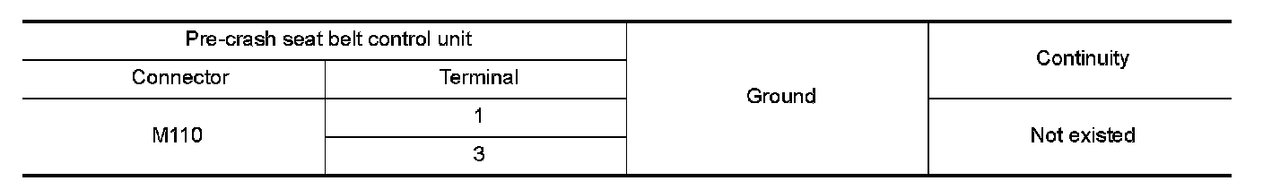 4.Check continuity between pre-crash seat belt control unit harness connector and ground.
