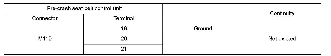 3.Check continuity between pre-crash seat belt control unit harness connector and ground.
