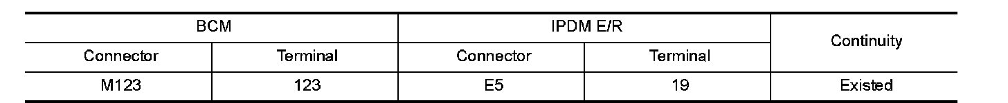 2.Check continuity between BCM harness connector and IPDM E/R harness connector.