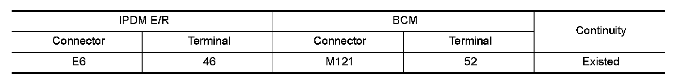 3.Check continuity between IPDM E/R harness connector and BCM harness connector.